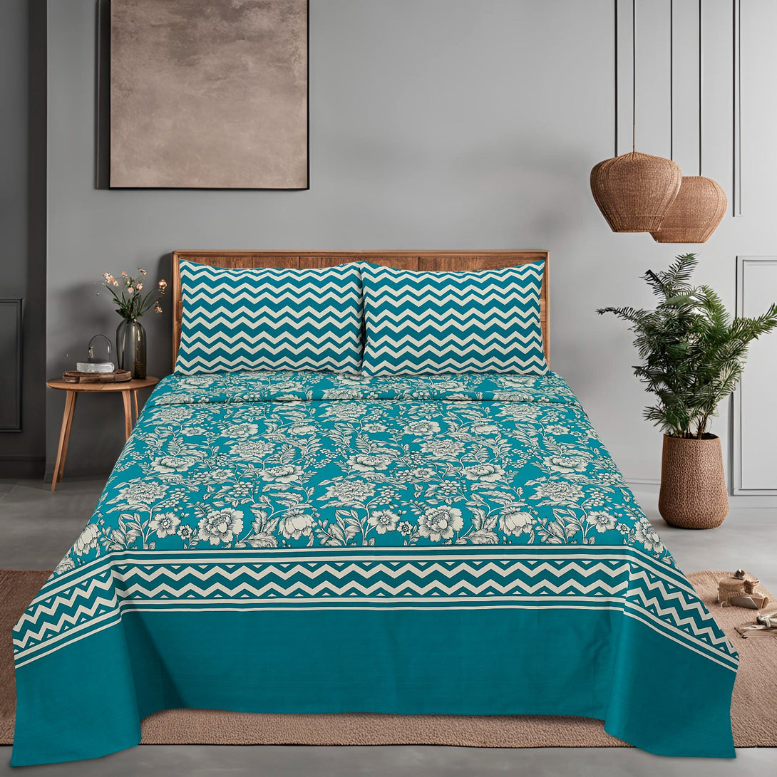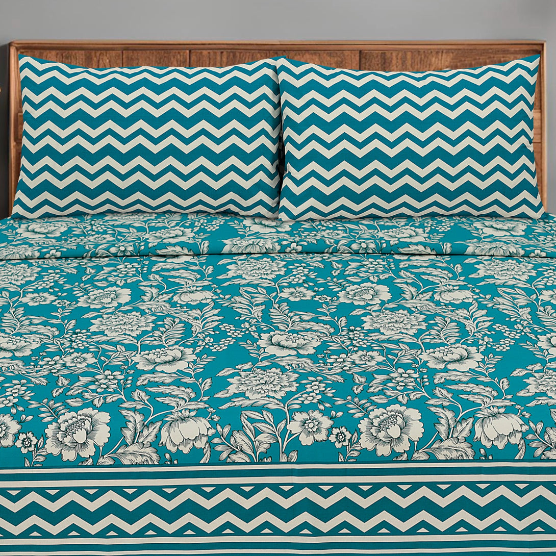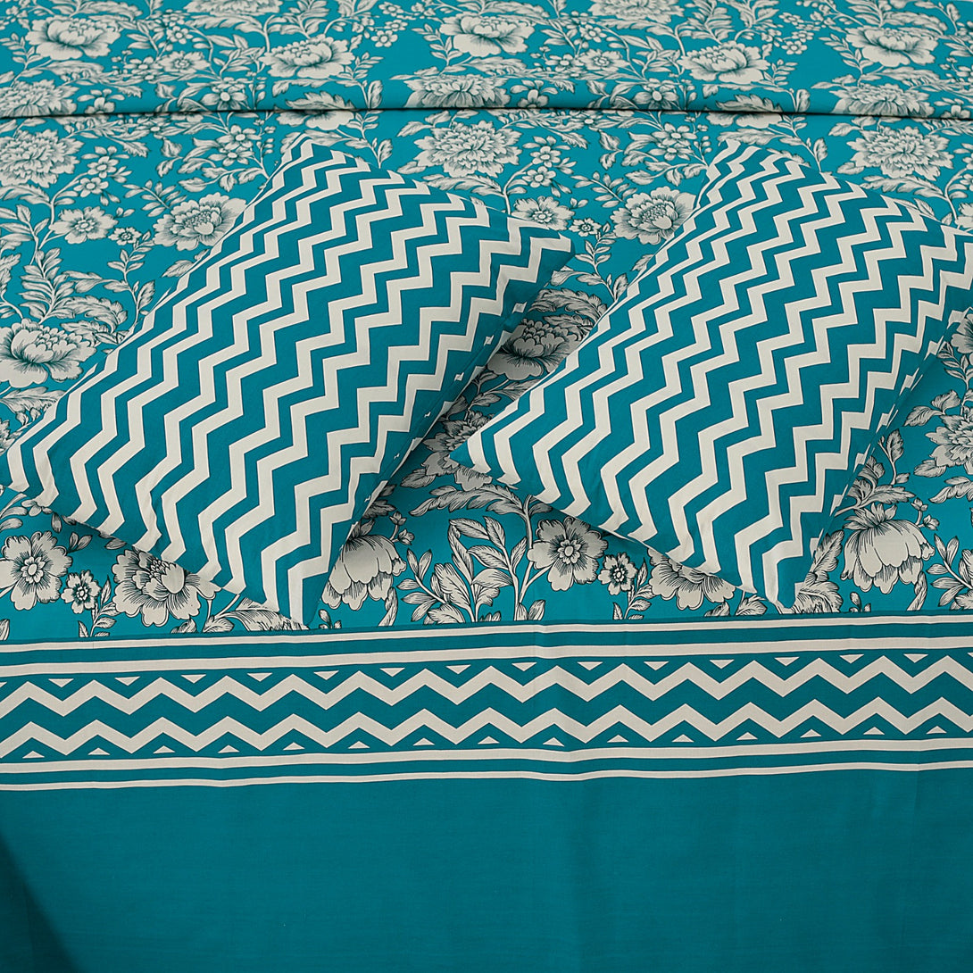 A Beat Beneath The Blue. Ivory Florals Unfurl Over A Deep Teal Sea, Framed By Zigzag Stripes That Echo The Rhythm Of A Heartbeat. Energetic Yet Composed, This Set Feels Like A Pulse Of Life In A Moment Of Calm.
